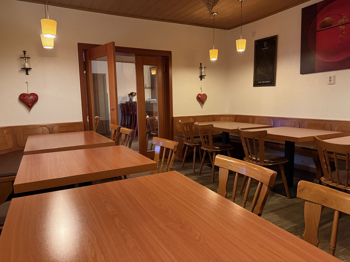 hat ca. 21 qm und ist mit Tischen und Stühlen versehen.